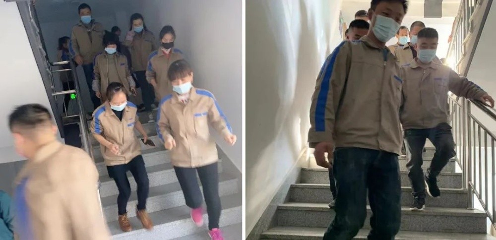 隨著警報(bào)響起,應(yīng)急疏散演練正式開始,班組長(zhǎng)在各車間門口引導(dǎo)員工迅速離開車間,員工用濕毛巾之類物品捂住口鼻彎腰低姿快速有序地沿防火安全疏散通道向外跑,各部門負(fù)責(zé)人將員工引導(dǎo)至空曠安全地帶“緊急集合點(diǎn)”,隨即各車間主任清點(diǎn)人數(shù),并層層向上匯報(bào)。