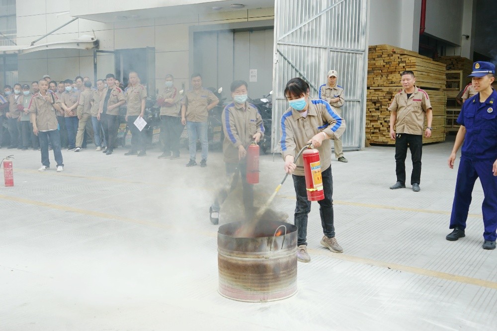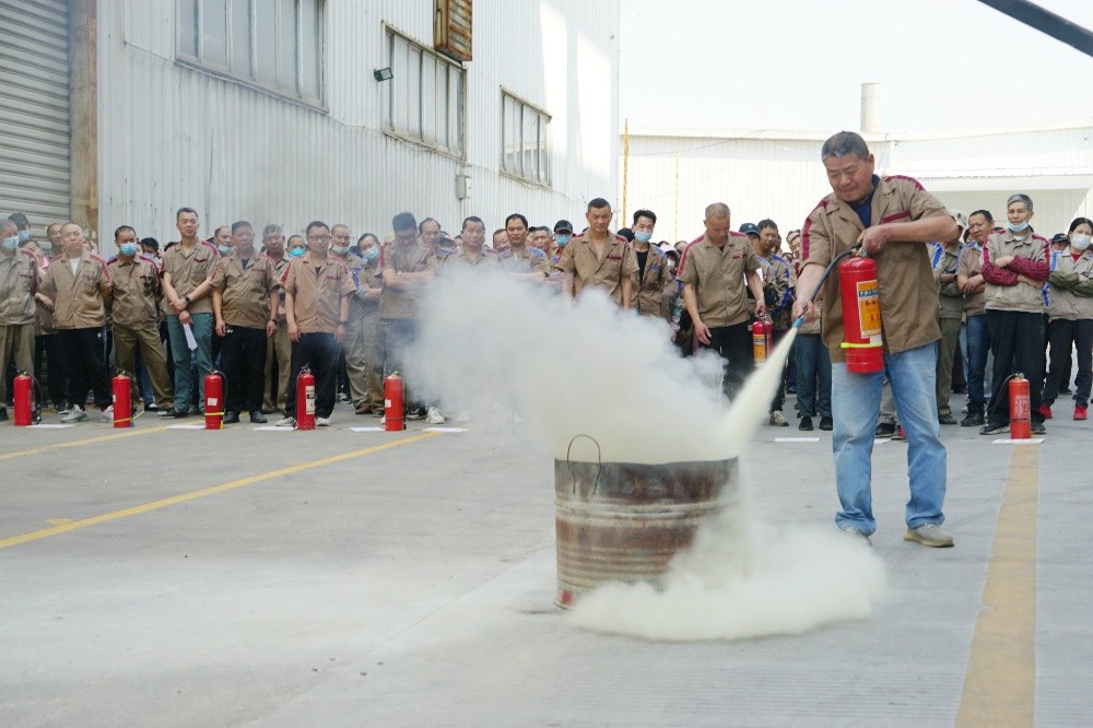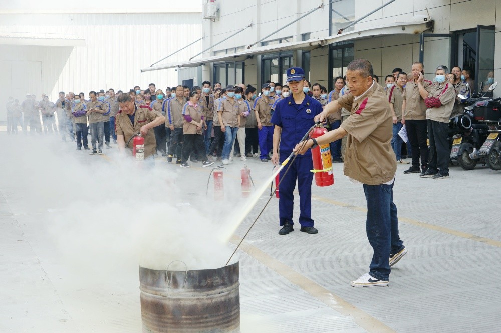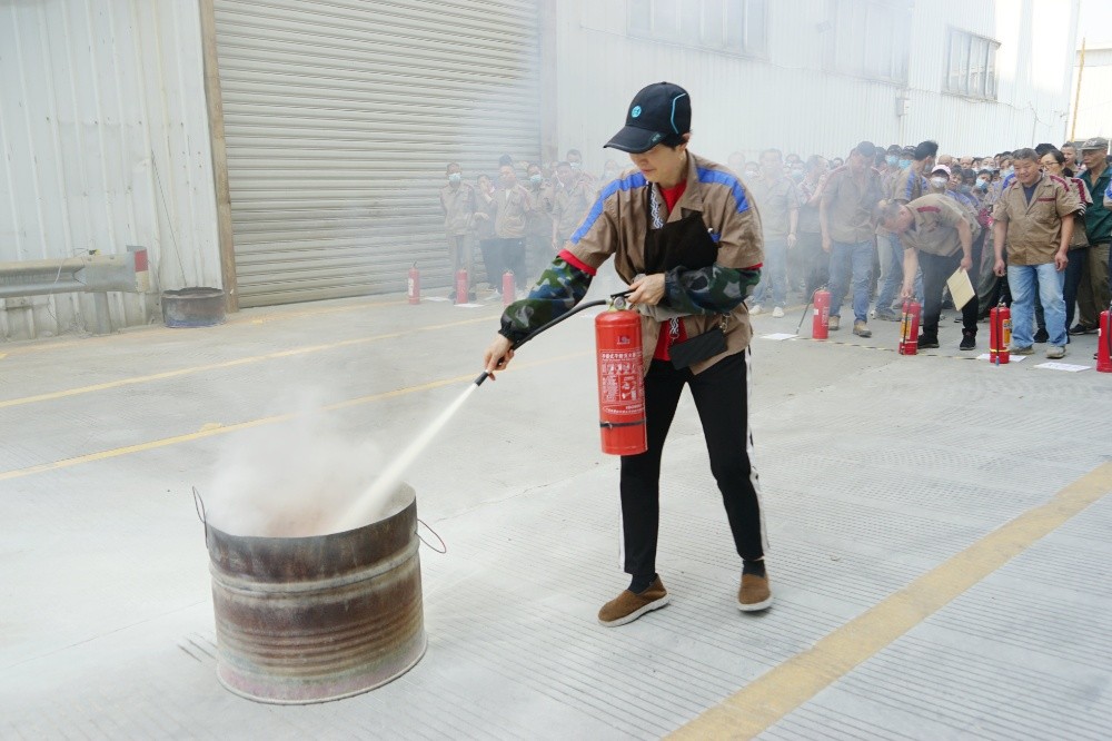 首先由車間主任、班組長(zhǎng)等進(jìn)行操作示范,隨后由新員工們輪流使用滅火器訓(xùn)練,對(duì)不當(dāng)操作進(jìn)行現(xiàn)場(chǎng)糾正,力求使公司每位員工都能熟練掌握滅火技能。